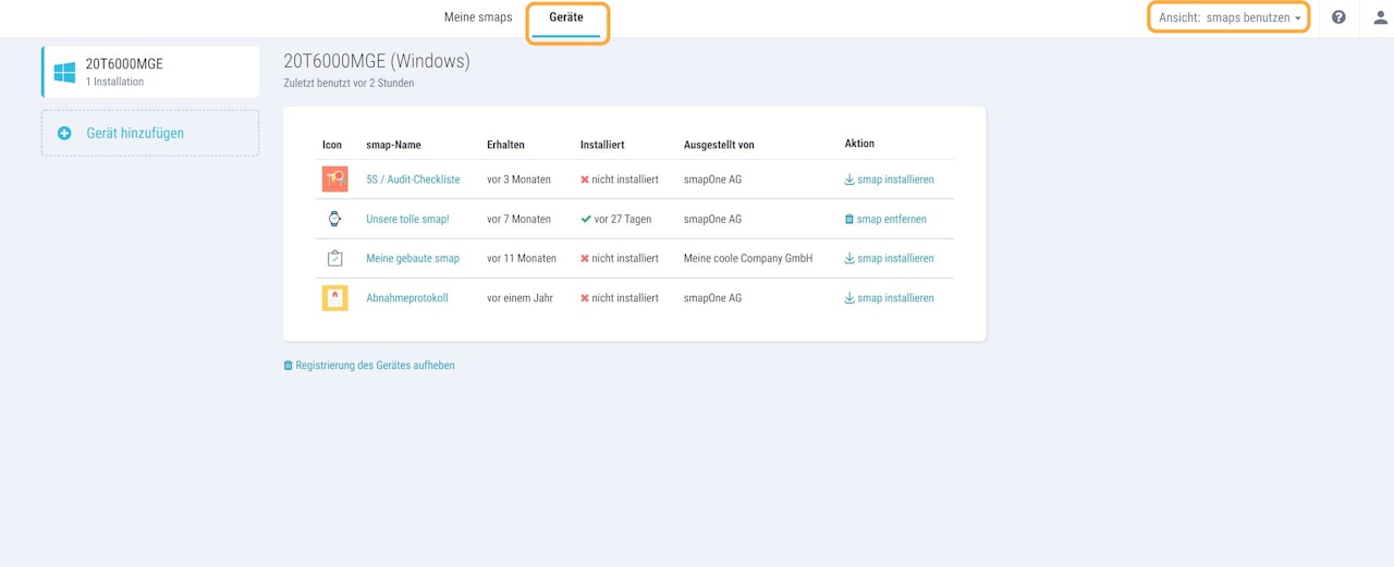 smaps benutzen - Geräteverwaltung