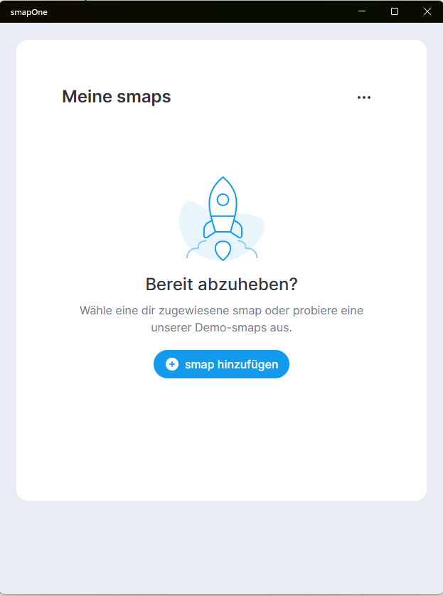 Alle dir bzw. einem Nutzer (Identifizierung über die E-Mailadresse) zugewiesenen smaps können direkt in der smapOne App abgerufen werden. Hierzu klicke bitte in der Hauptansicht der smapOne App auf das graue Plus. Sofern Du noch keine smaps installiert hast, wird dir "smaps hinzufügen" mittig dargestellt.