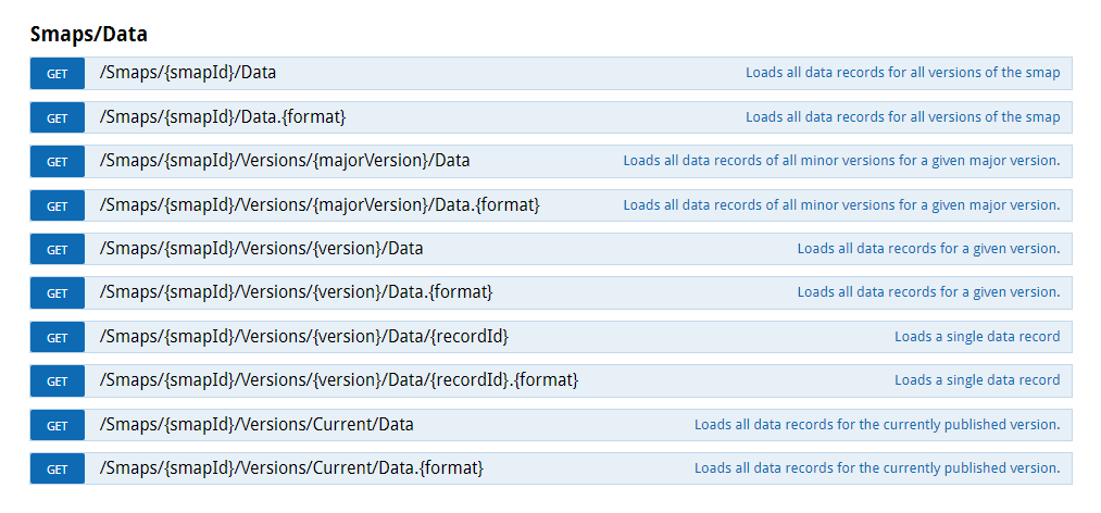 Datensätze einer smap können direkt über die REST-API abgerufen werden. Hierbei können die Daten direkt als Rohdaten (z.B. JSON oder XML) oder auch in Dateiform (z.B. den Bericht in PDF oder DOC/DOCX) bezogen werden.