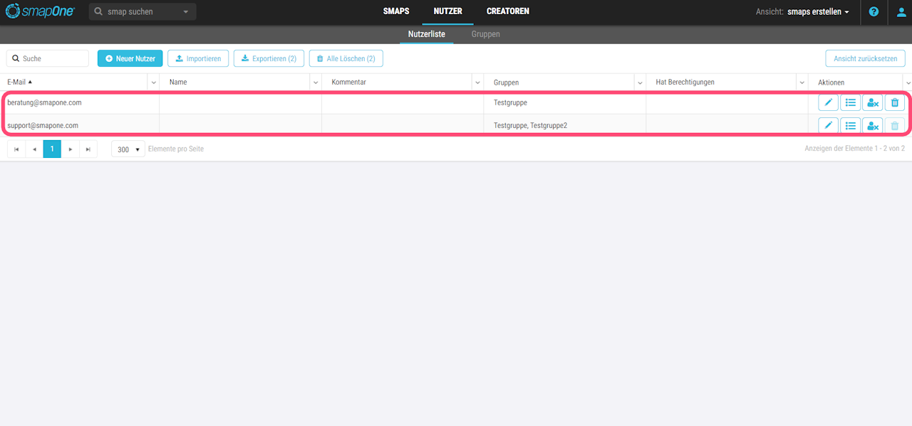 Yes, navigate to the Users menu and click the Manage smaps table icon. Now you get a view of all created smaps of your Creator account. In the Assignment column, you can see whether the user has already been assigned a corresponding smap and whether it has already been installed.