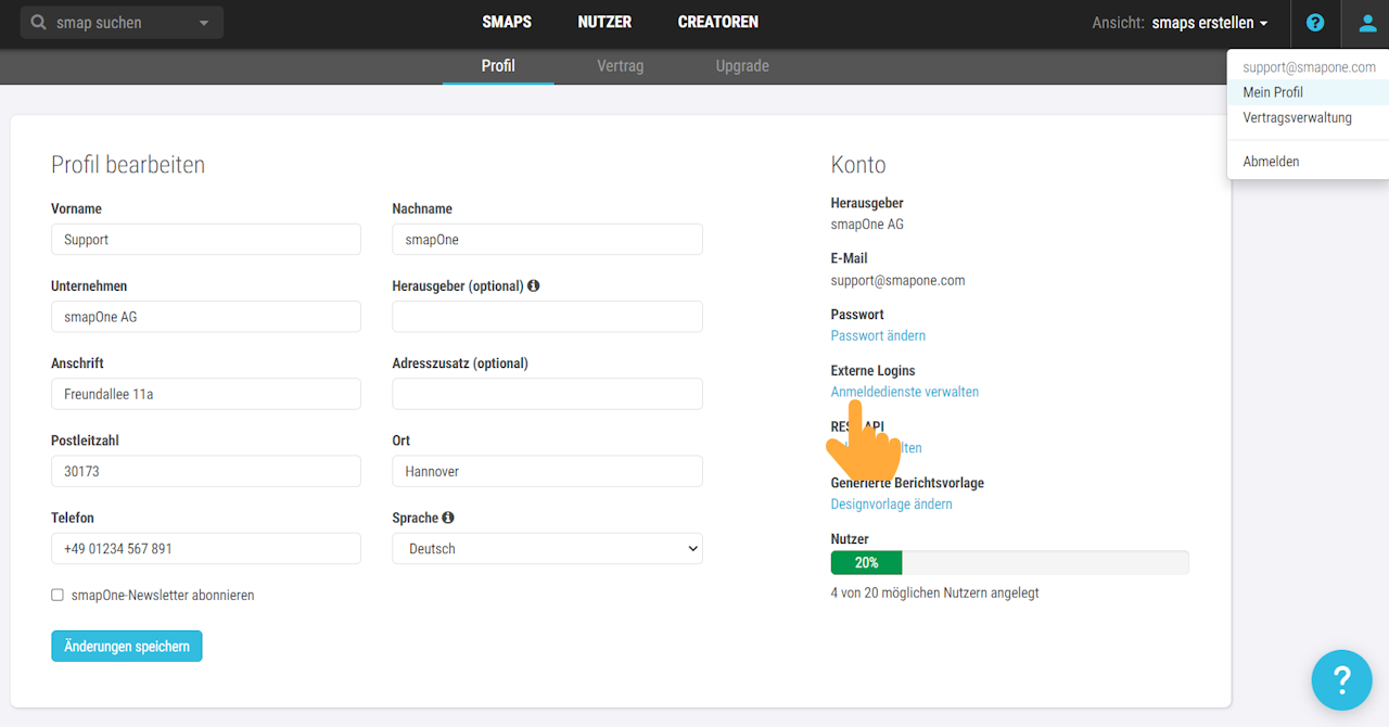 To simplify the login (Single Sign On) accounts from Microsoft or Google can be linked.