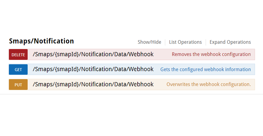 - GET - show settings of an existing Webhook of a smap,